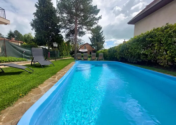 Há cozinha totalmente equipada com microondas, chaleira elétrica e refrigerador, bem como comodidades para refeições no quarto, tais como máquinas de café/chá. Os hóspedes podem desfrutar de uma refeição no a doceria Bergmann Cukrászda, localizado a alguns minutos de carro desta propriedade. Localizada a 5 minutos a pé, a estação de autocarros Helka utca oferece opções de transporte nas proximidades. Existe piscina ao ar livre para relaxar, bem como caminhada, equitação e ciclismo.